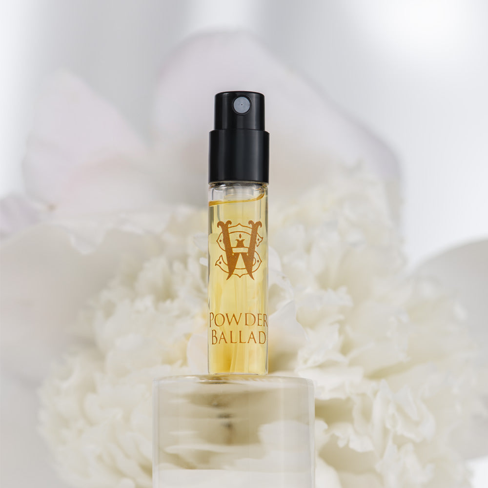 Powder Ballad ist für alle, die zum Hochzeitskleid Lederstiefel tragen. Weich und texturiert, zugleich reich und resonant - ein Duft für alle, die sich nach Zärtlichkeit und Feuer sehnen.