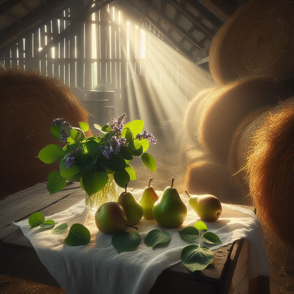Birne, Veilchenblatt, Heu